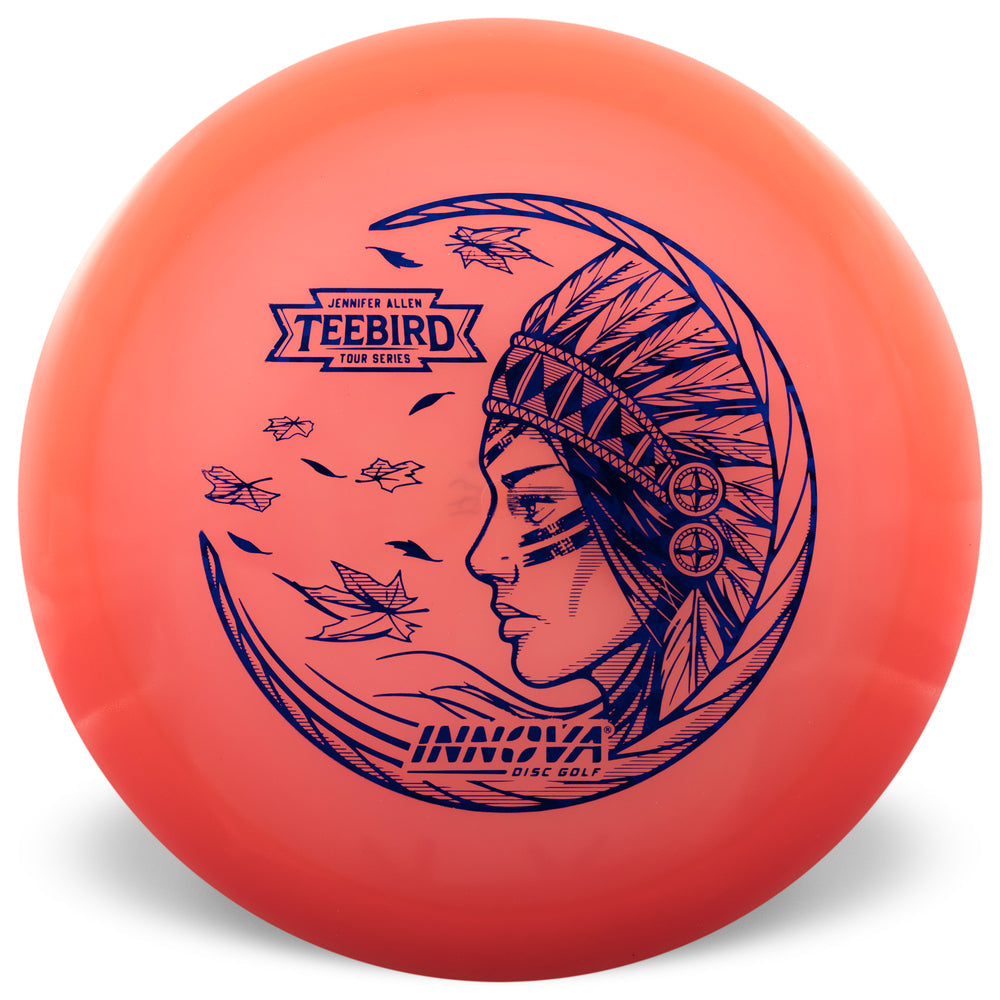 Jennifer Allen captured over 30 million video views from aces with her Tour Series TeeBird back in 2023. No surprise that she's stuck with it as her Tour Series disc ever since. This year we're rolling out Jennifer Allen Proto Glow Champion Teebirds with a stamp that relates to her Cherokee heritage.