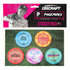 Introducing the Paige Pierce Signature Series Disc Sticker Pack. Each pack comes with 5 separate "disc" stickers. These stickers are printed on a waterproof matte vinyl that will last for years wherever you decide to place it.